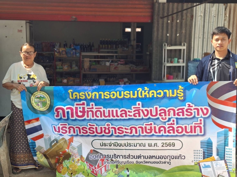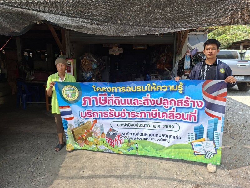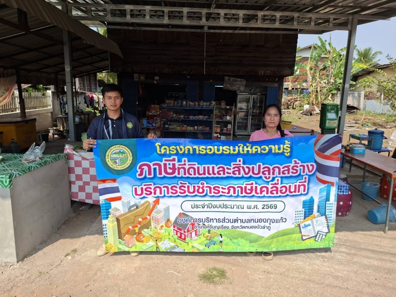 งานจัดเก็บรายได้ องค์การบริหารส่วนตำบลหนองกุงแก้ว วันที่ 25 กุมภาพันธ์ 2569 ออกสำรวจป้ายภาษี ที่ดินและสิ่งปลูกสร้าง บ้านทองดีพัฒนา บ้านศรีหนองกุง บ้านหนองกุงแก้ว บ้านใหม่ทานตะวัน บ้านนาสำราญและบ้านนารุ่งเรือง